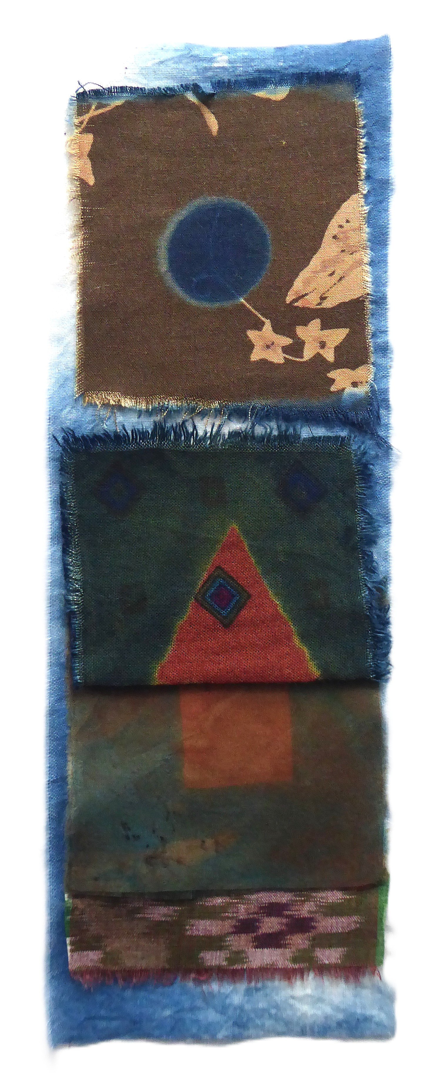 A base of light cotton, 10" x 3.5", indigo-dyed.