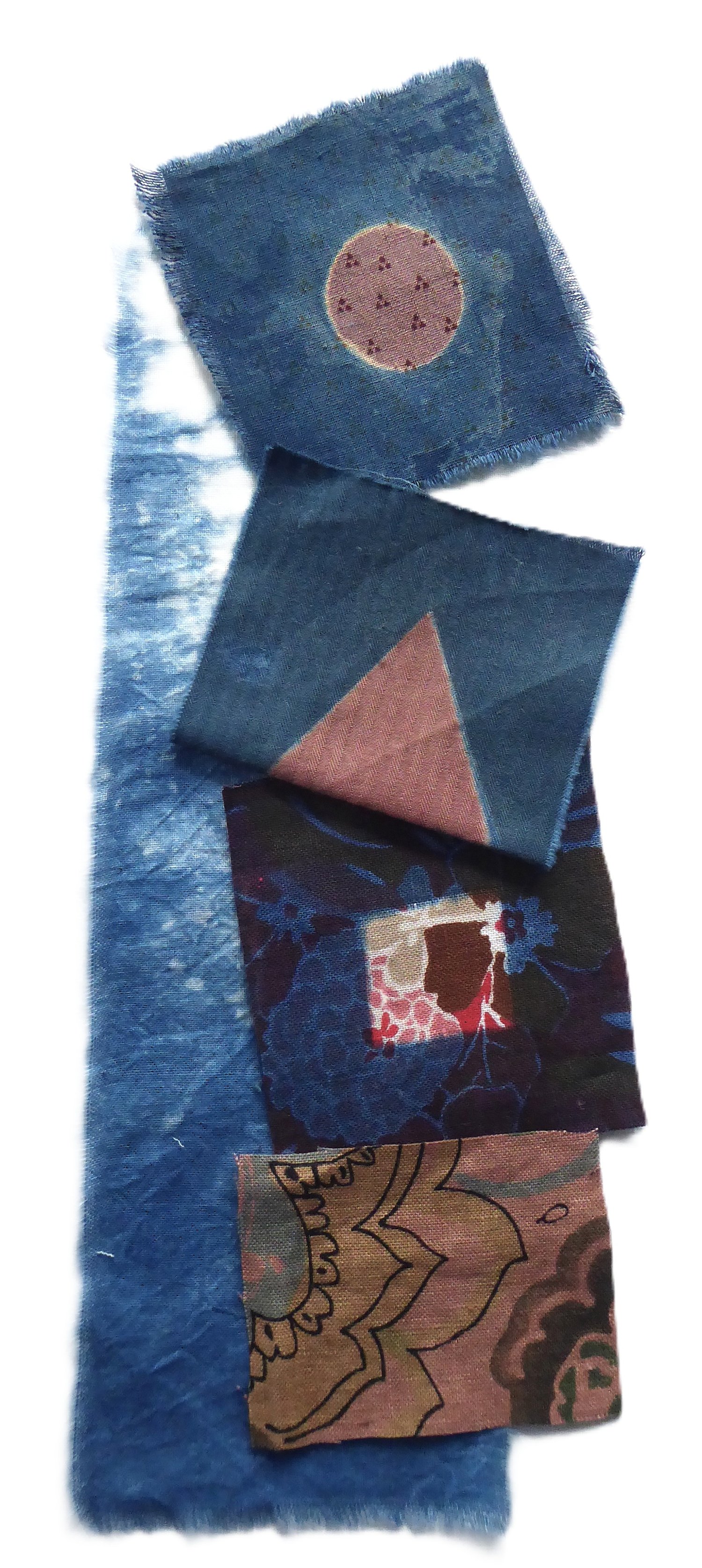 And four patches of vintage fabric. Snipped about 3" square. Most of them indigo-dipped.