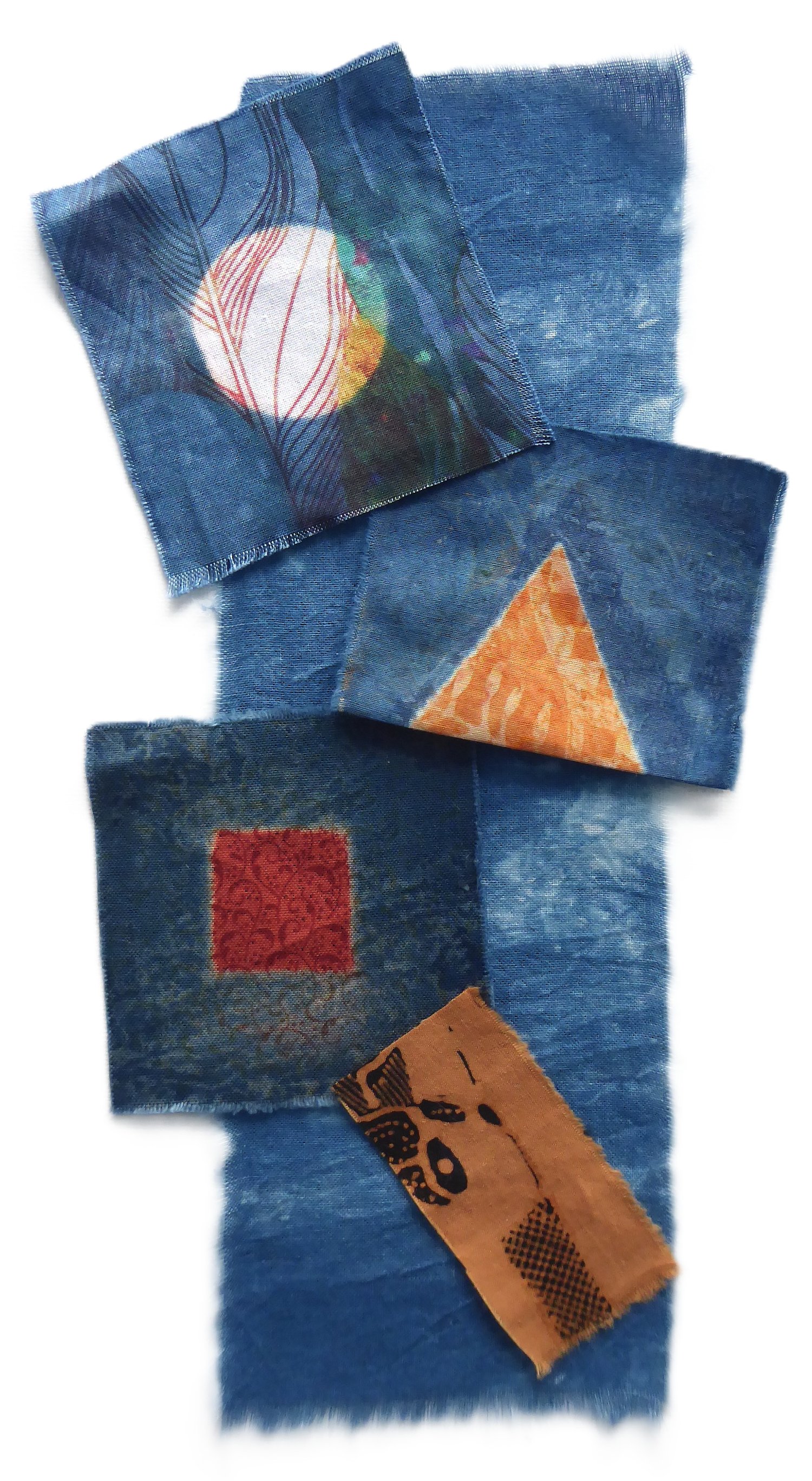 A base of light cotton, 10" x 3.5", indigo-dyed.