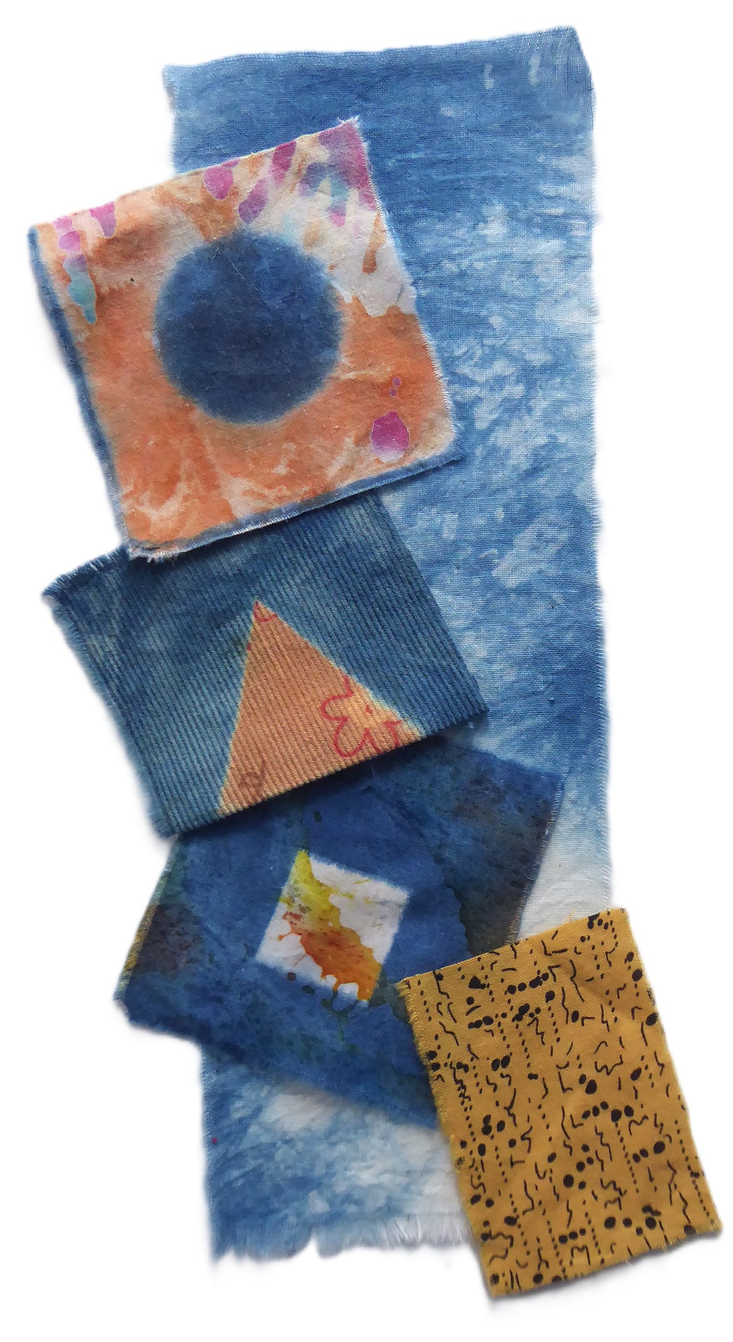 A base of light cotton, 10" x 3.5", indigo-dyed.