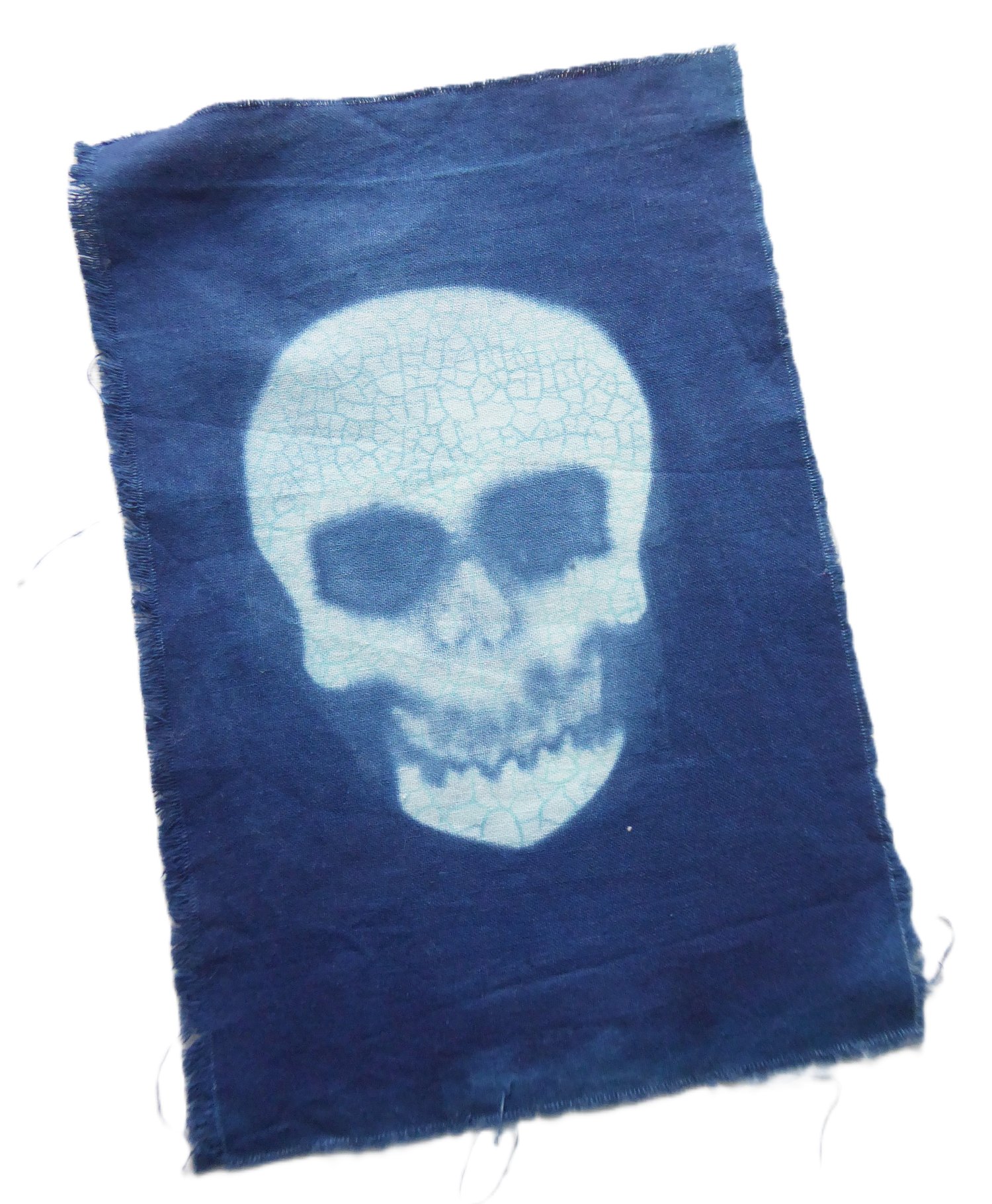 A patch of vintage cotton fabric. Snipped large, about 4-6" long (they vary and I don't have time to measure each one). Then indigo-dipped.