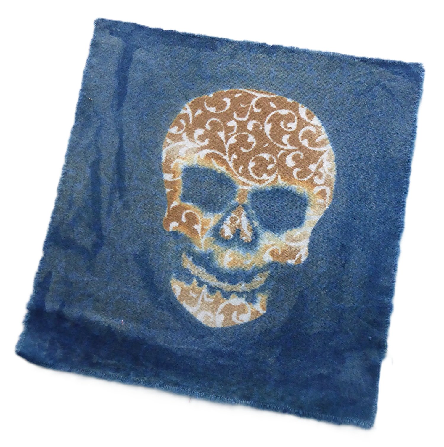 A patch of vintage cotton fabric. Snipped large, about 4-6" long (they vary and I don't have time to measure each one). Then indigo-dipped.