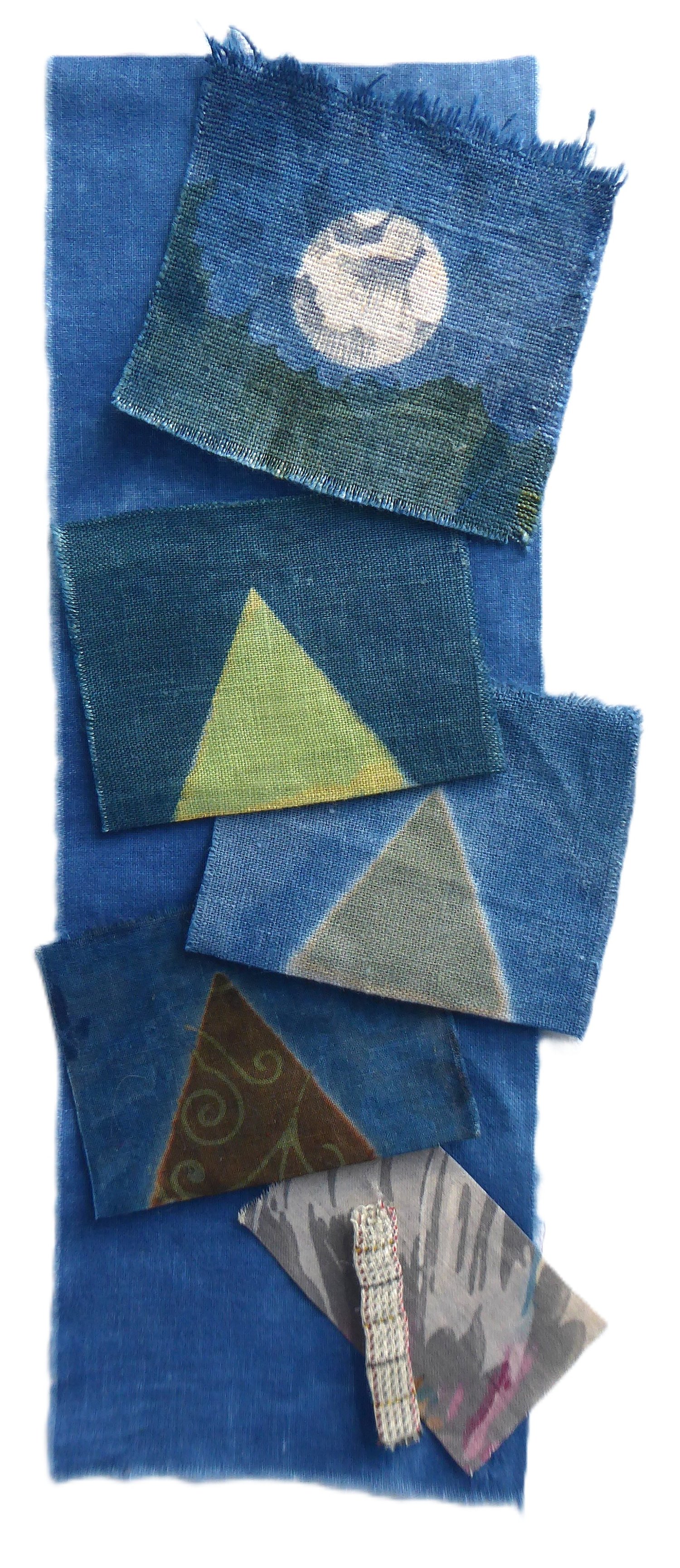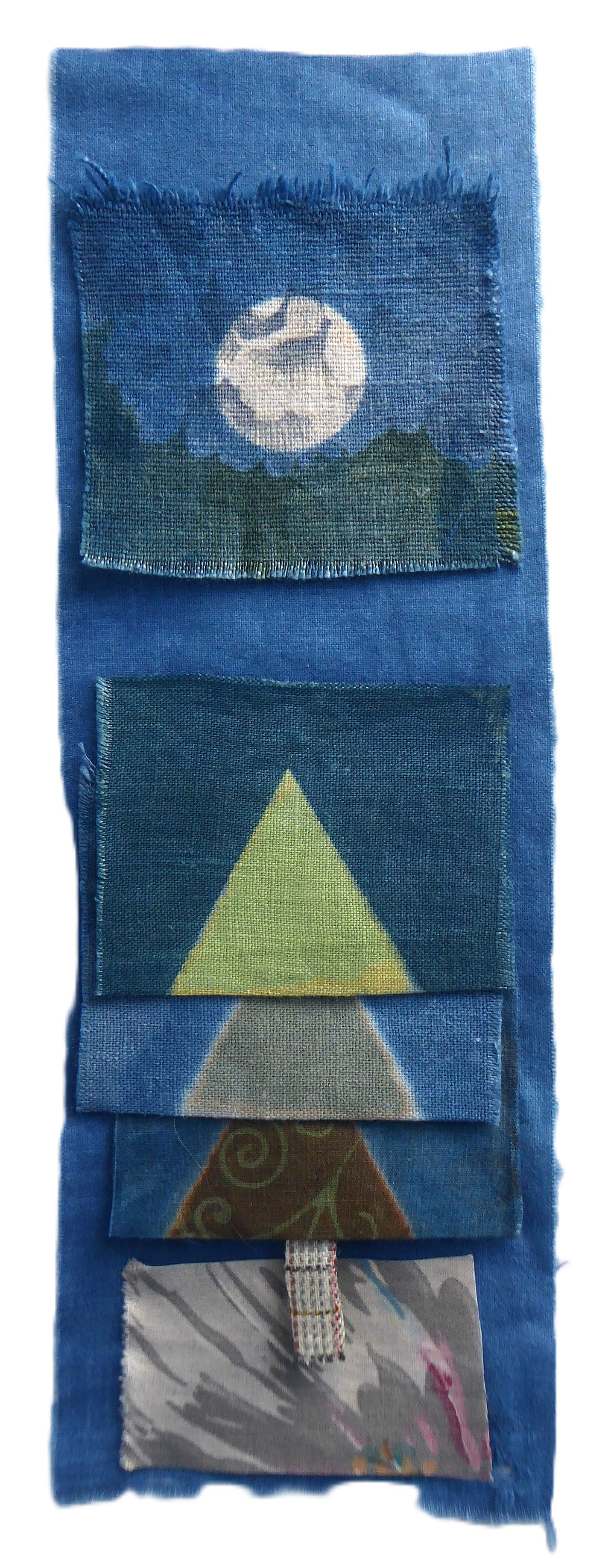 A base of light cotton, 10" x 3.5", indigo-dyed.