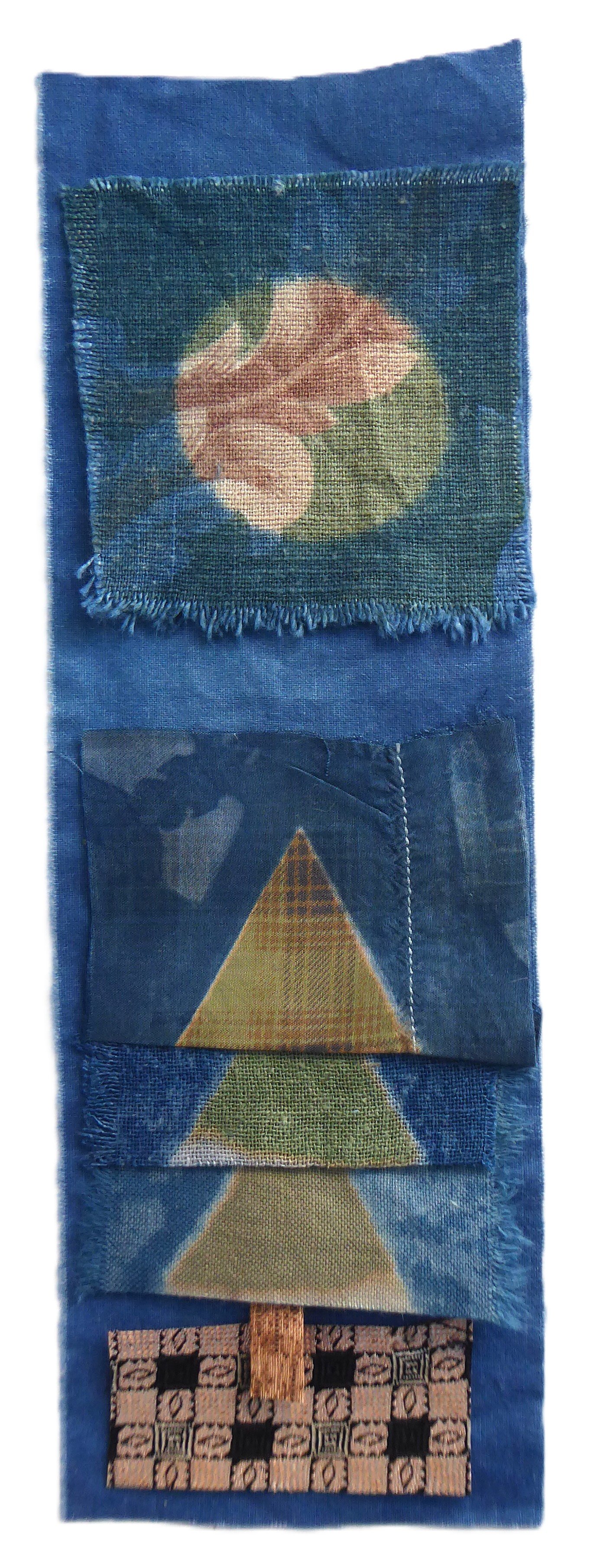 A base of light cotton, 10" x 3.5", indigo-dyed.
