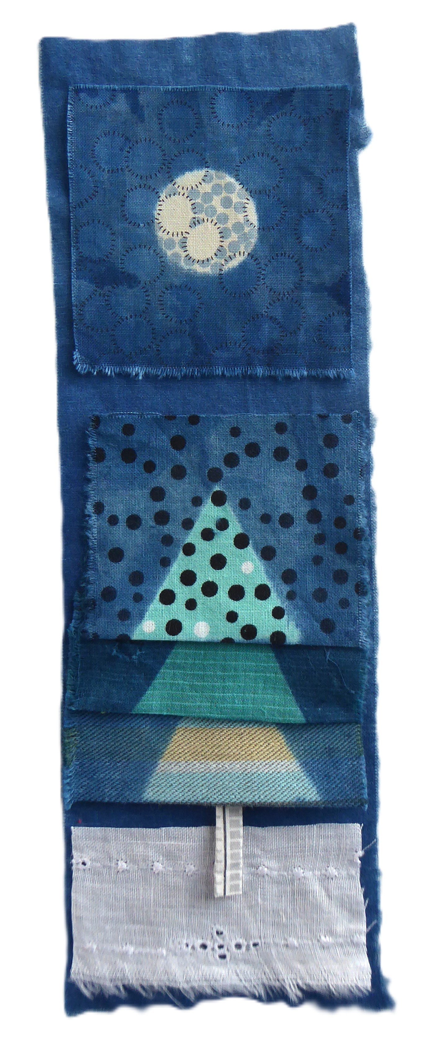 A base of light cotton, 10" x 3.5", indigo-dyed.