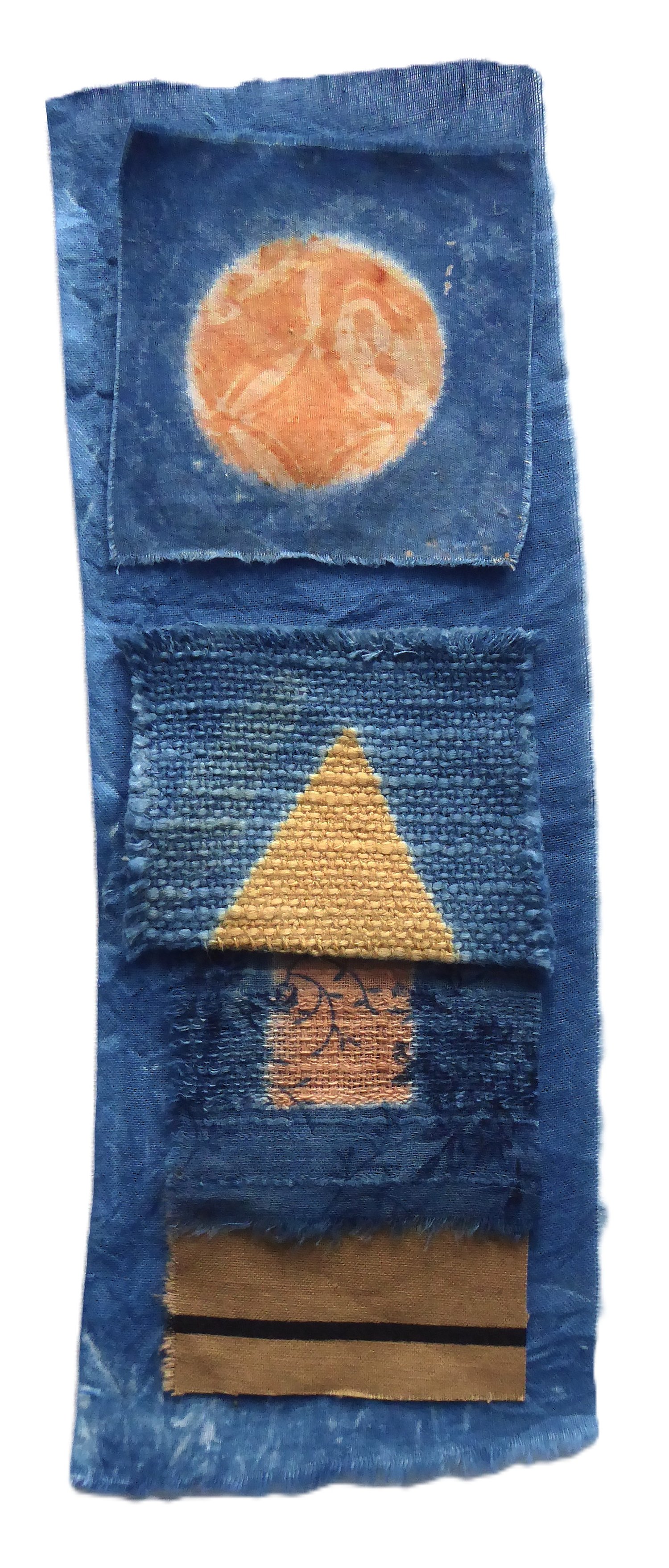 A base of light cotton, 10" x 3.5", indigo-dyed.