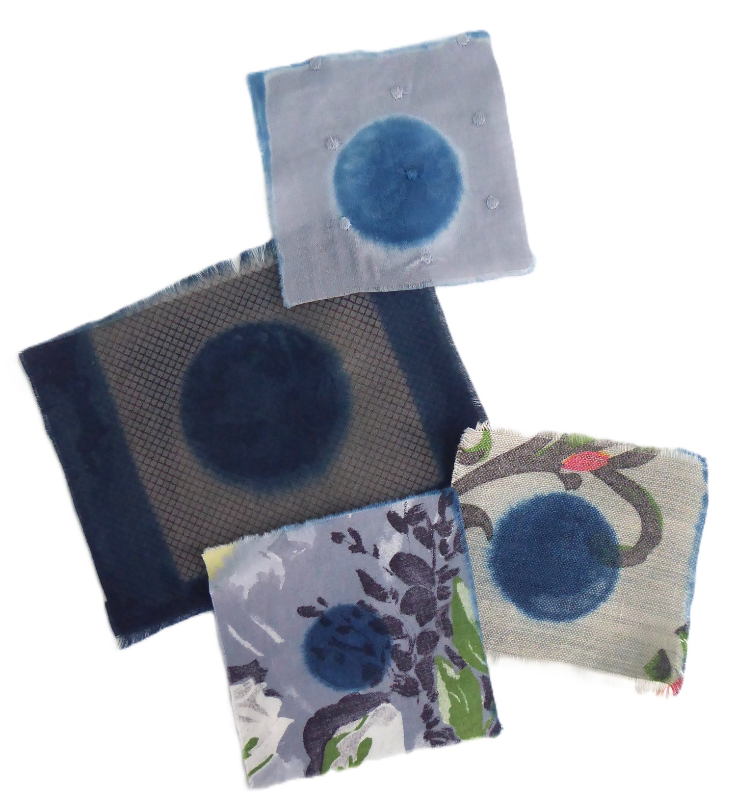 Four patches of vintage fabric.