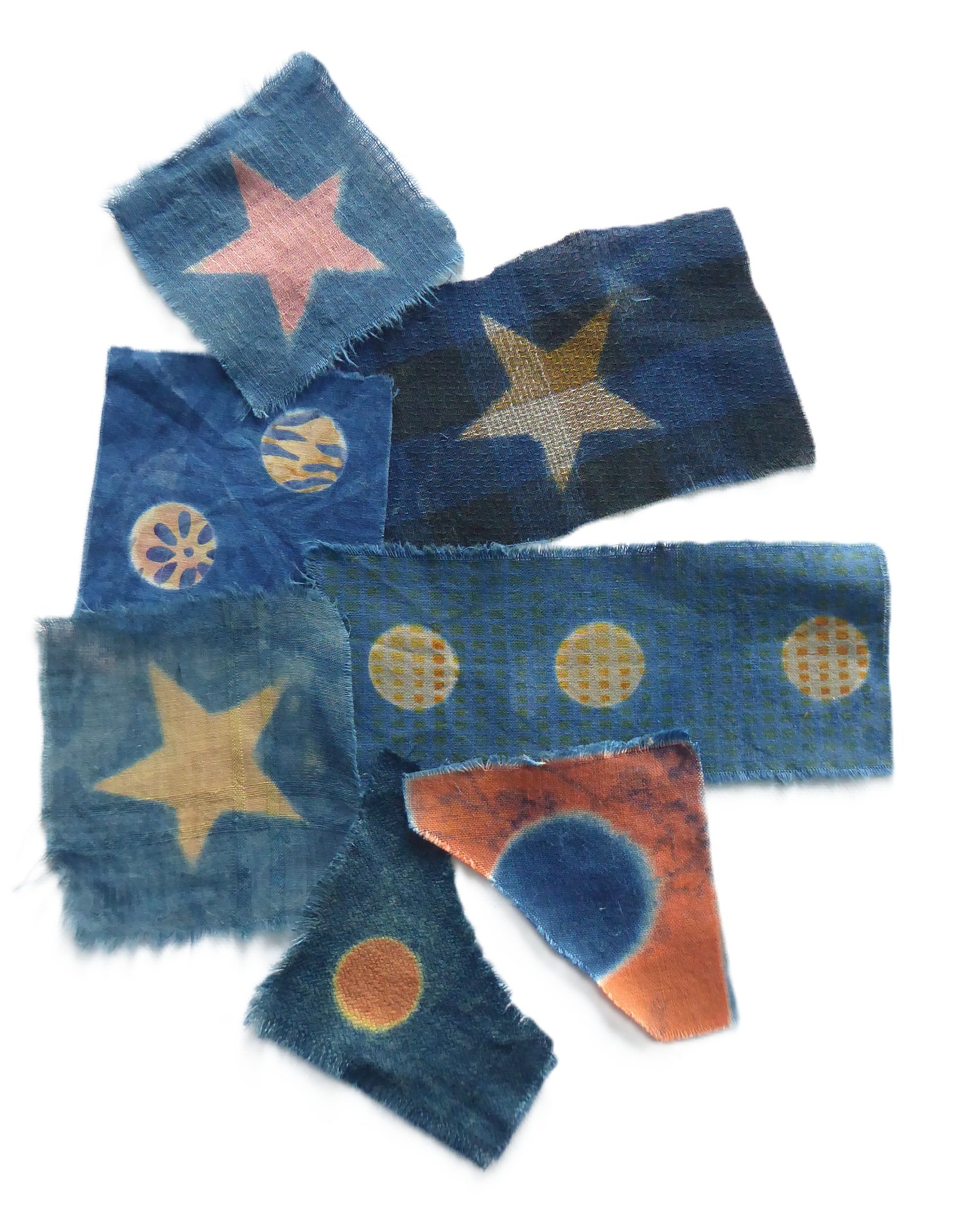 Seven patches of vintage fabric.