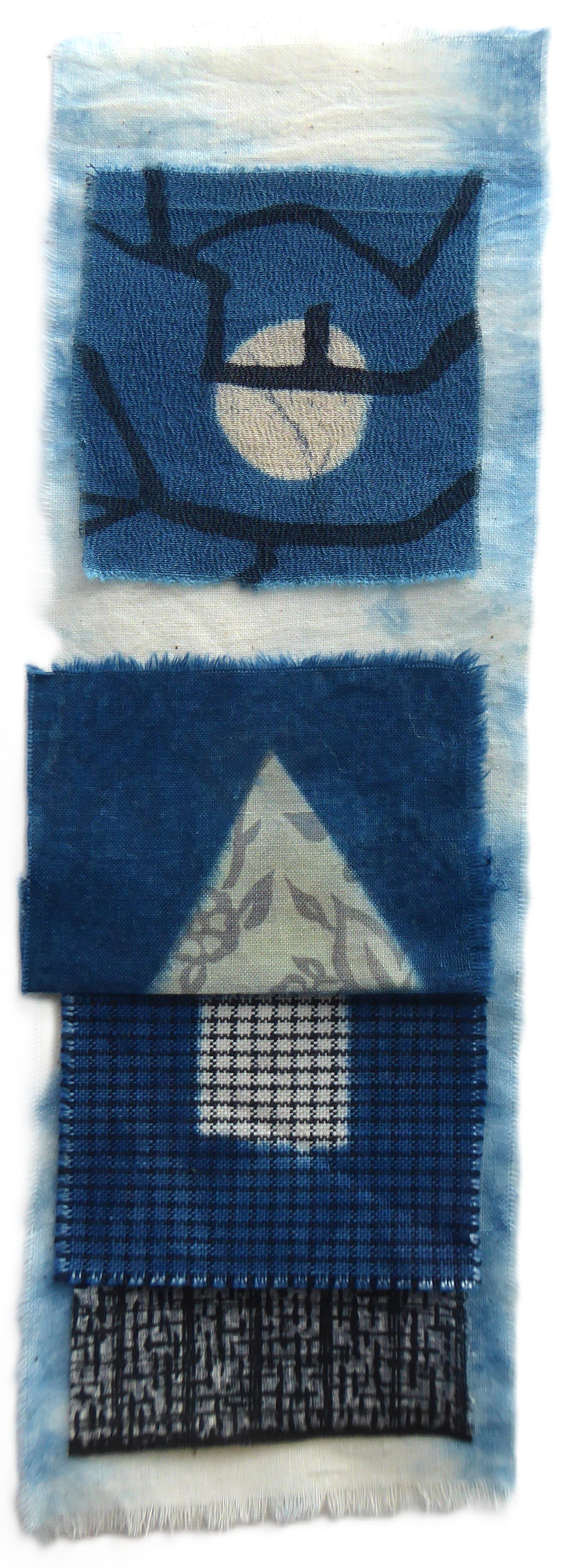 A base of light cotton, 10" x 3.5", indigo-dyed.