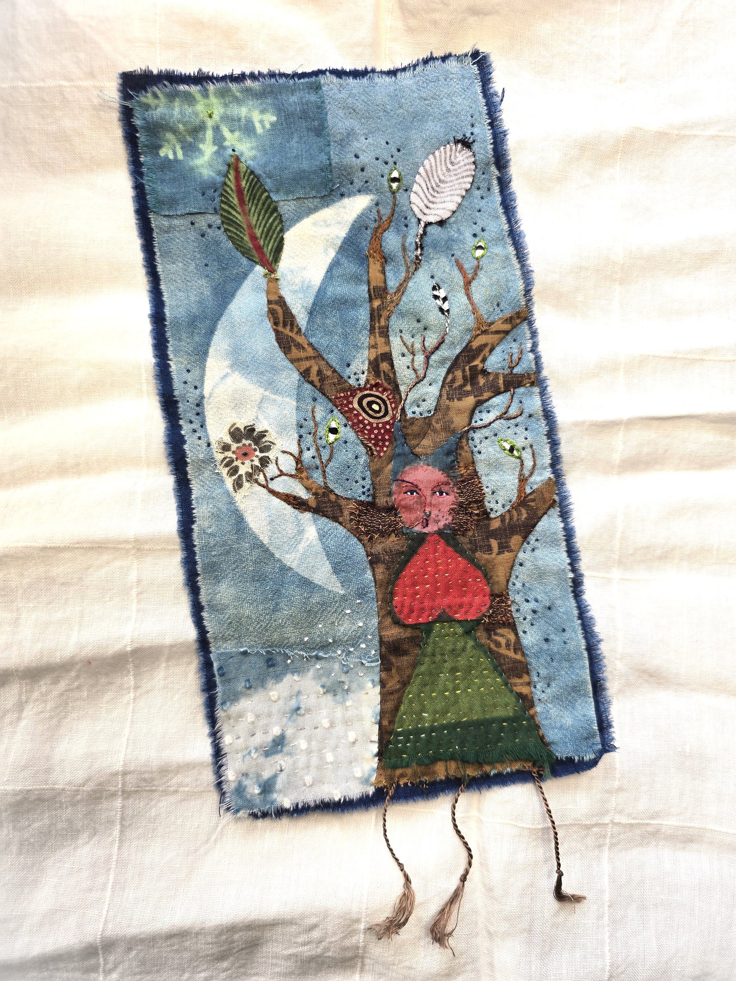 Old cotton and silk, some indigo dyed.